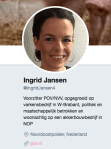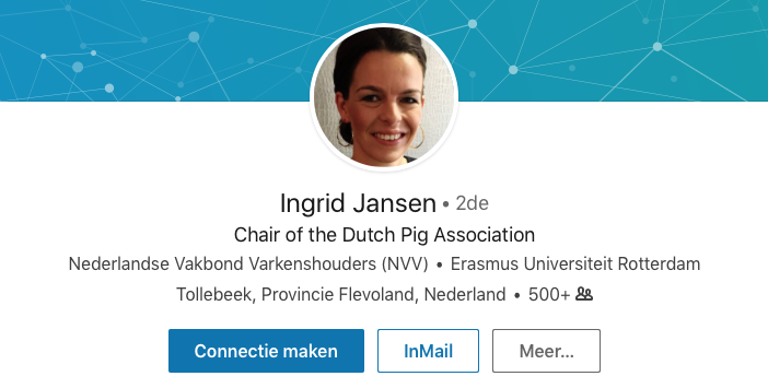 Daarom heb ik mevrouw Jansen even gegoogeld, en wat blijkt: ze is de voorzitter van POV/NVV, de Producenten Organisatie Varkenshouderij, een belangenclub die de positie van varkenshouders in Nederland wil versterken, inclusief verdienmodellen. Volgens haar Twitter-bio, Linkedin-profiel en de website van POV woont ze op een akkerbouwbedrijf in Tollebeek in de Noordoostpolder. Wat is haar link dan met Ede? Dat haar organisatie vorige maand een kantoor op het kazerneterrein in Ede heeft geopend om hun sectorbelangen te vertegenwoordigen.